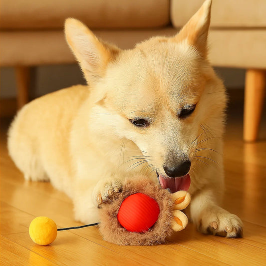 Hundelegetøj Bold med pels ⎜ Bidfast hoppebold til selvunderholdning og aktivitet