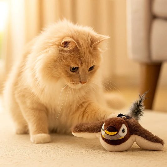Katte legetøj plys fugl ⎜ Interaktiv leg og jagt