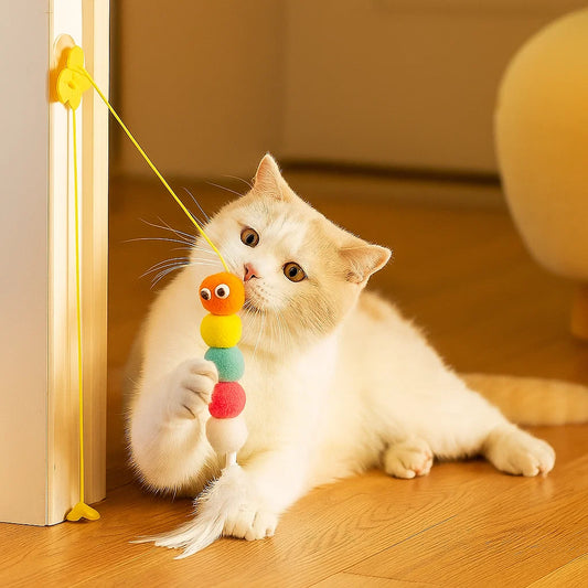 Katte legetøj hængende på døren ⎜ Fjedrende leg med fjer og klokke