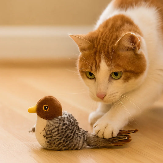 Kattelegetøj Plysfugl ⎜ Interaktivt lydlegetøj