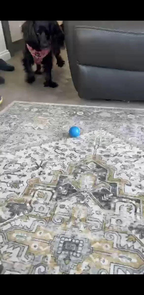 Jeg elsker at se min hund jage bolden rundt i stuen. Han bliver både træt og glad af det.