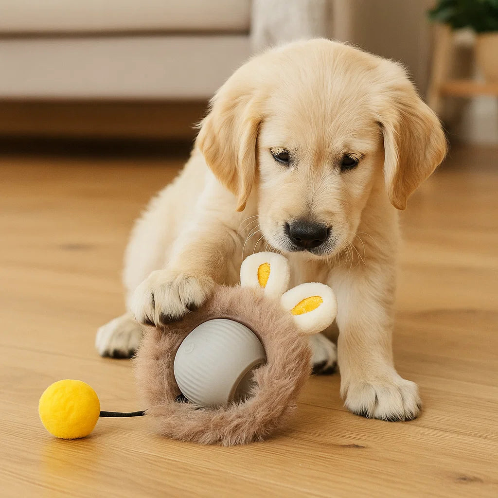Hundelegetøj Bold med pels ⎜ Bidfast hoppebold til selvunderholdning og aktivitet