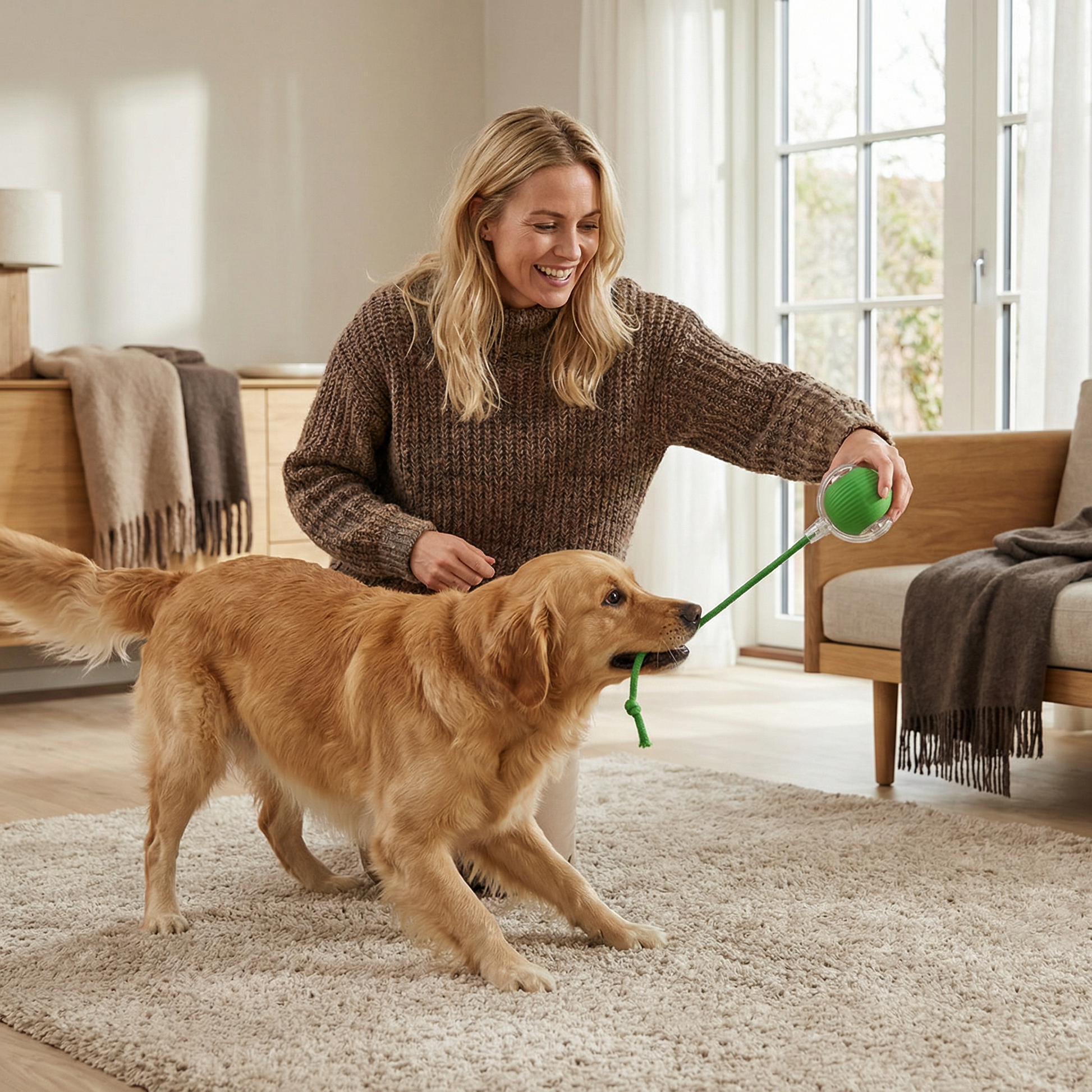 Uanset om det er i stuen, i haven eller på gåturen – den interaktive legebold med hale kan tages med overalt og giver sjov, uanset hvor I er. Med den robuste snor og den bidfaste bold er dette legetøj også ideelt til hunde, der elsker at tygge og tumle.