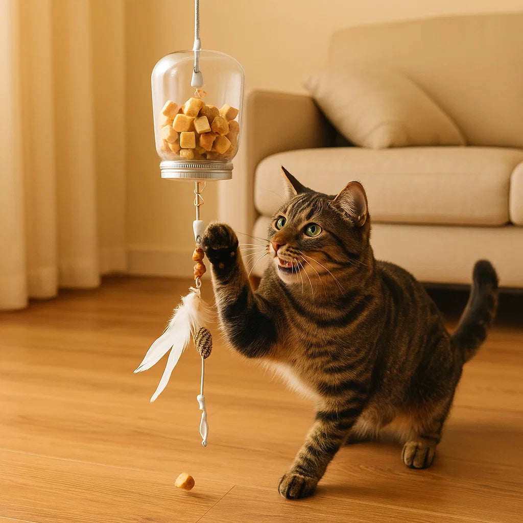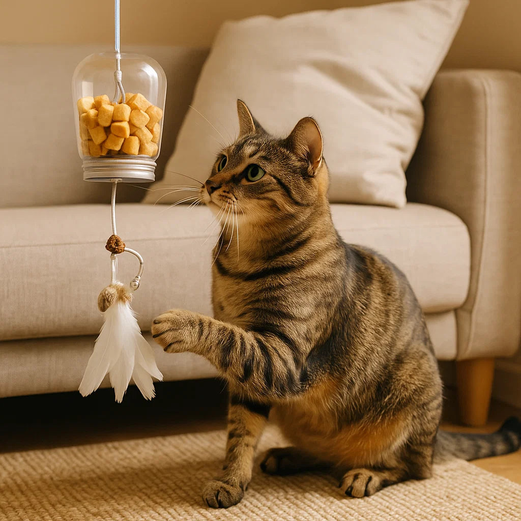 - 🧠 Rozwój sprytu i inteligencji: kot uczy się rozwiązywać małe zagadki, co wspiera jego naturalną ciekawość.