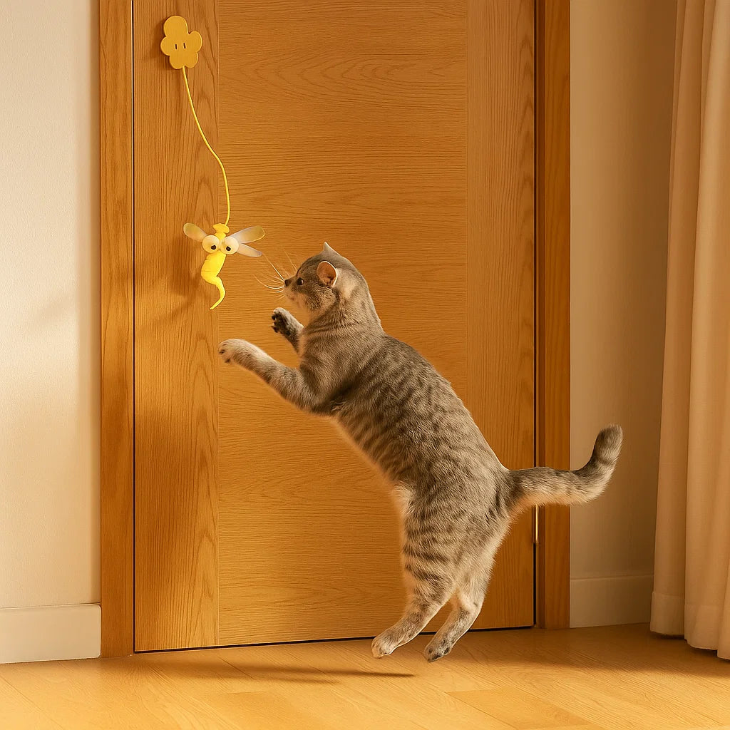 Dette legetøj giver din kat mulighed for at underholde sig selv, selv når du ikke er hjemme. Den fjederende funktion sørger for, at legen bliver ved med at være spændende, uden at kræve ekstra indsats fra dig. Det betyder mindre rod i hjemmet, da legetøjet er fastgjort på døren og ikke flyder på gulvet.